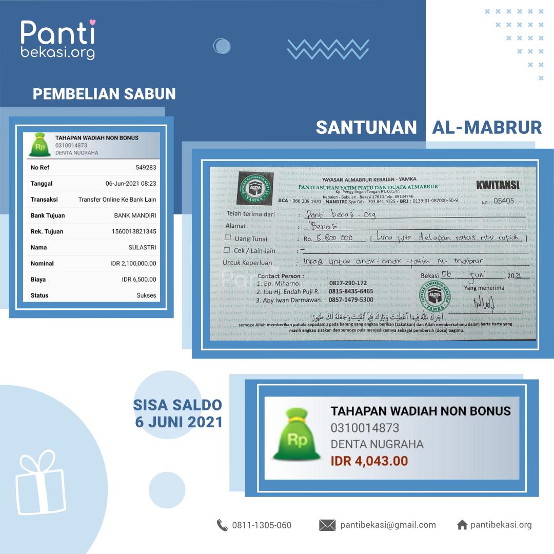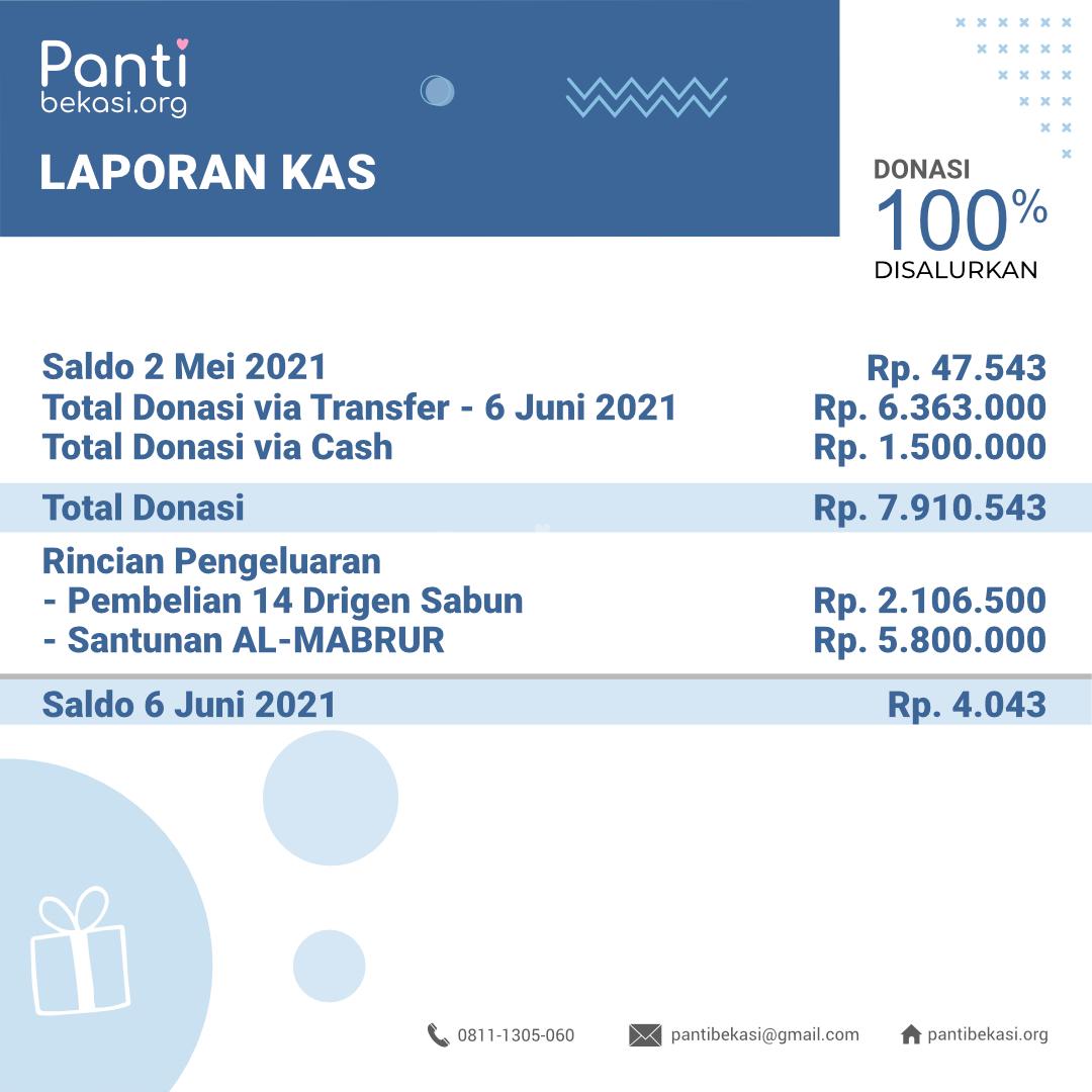 Alhamdulillah Safari Panti bulan Juni 2021 telah kami laksanakan dan berjalan dengan lancar. Terimakasih kepada seluruh donatur yang telah menyisihkan sebagian rezekinya melalui pantibekasi.org.