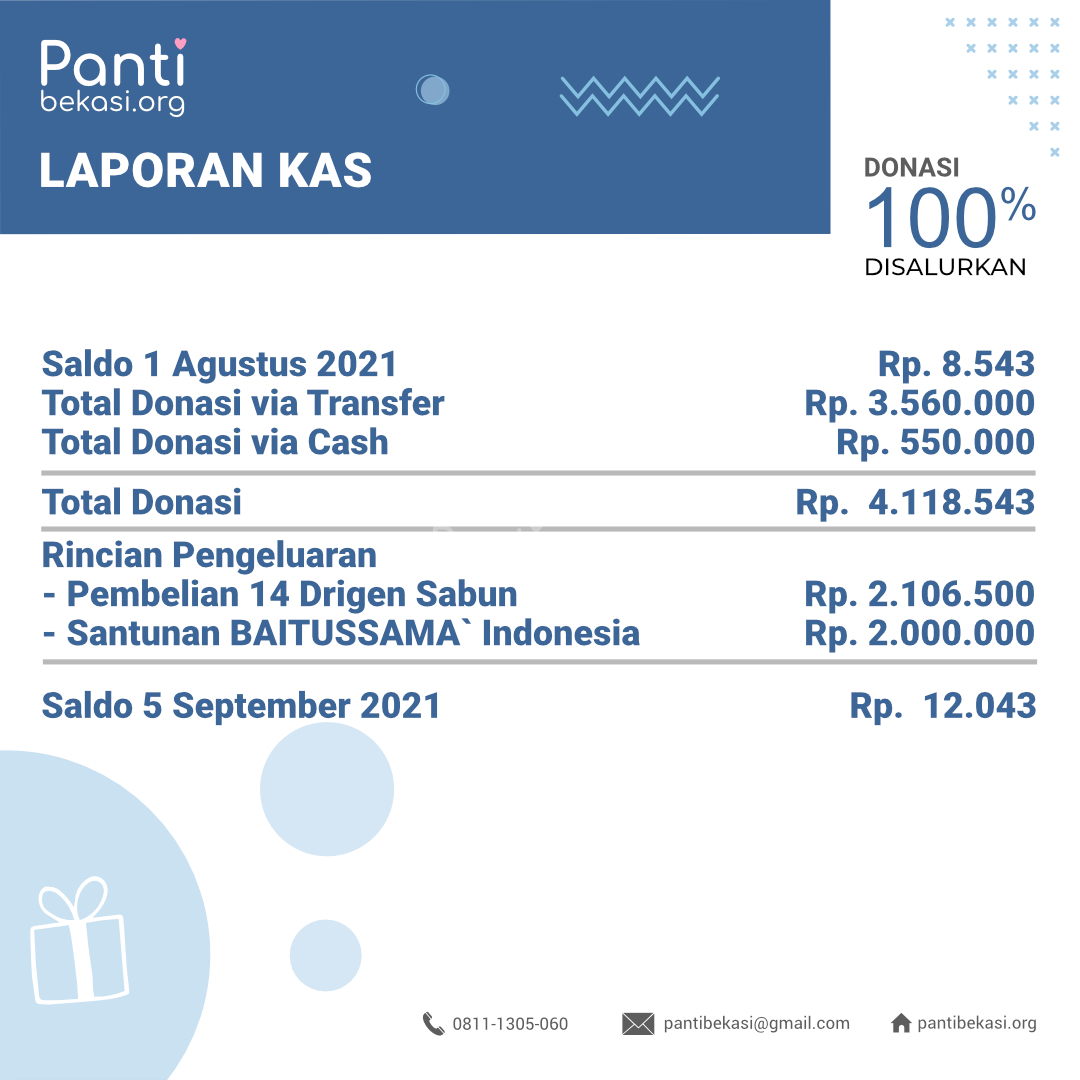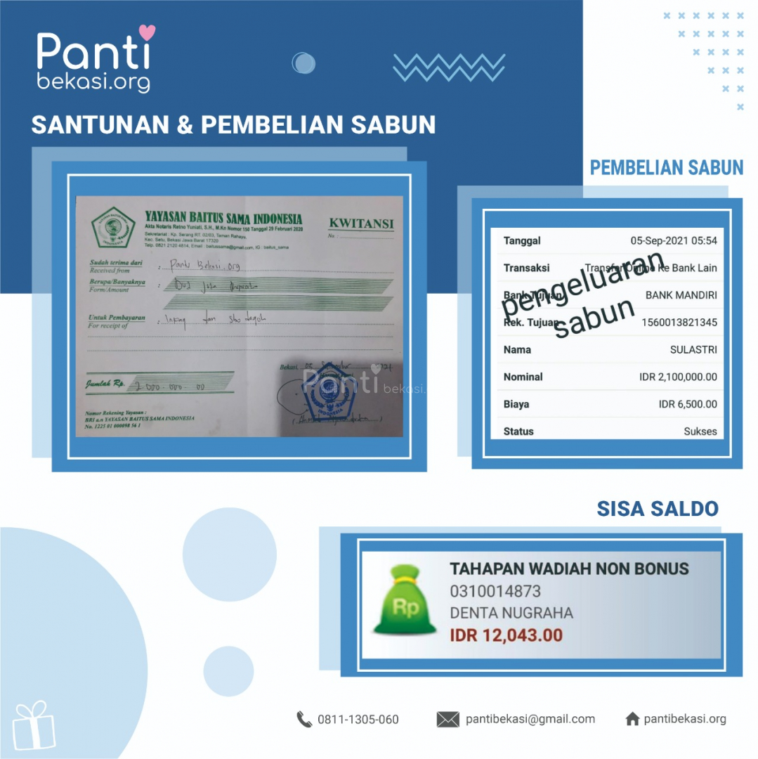 Alhamdulillah Safari Panti bulan September 2021 telah kami laksanakan dan berjalan dengan lancar. Terimakasih kepada seluruh donatur yang telah menyisihkan sebagian rezekinya melalui pantibekasi.org.