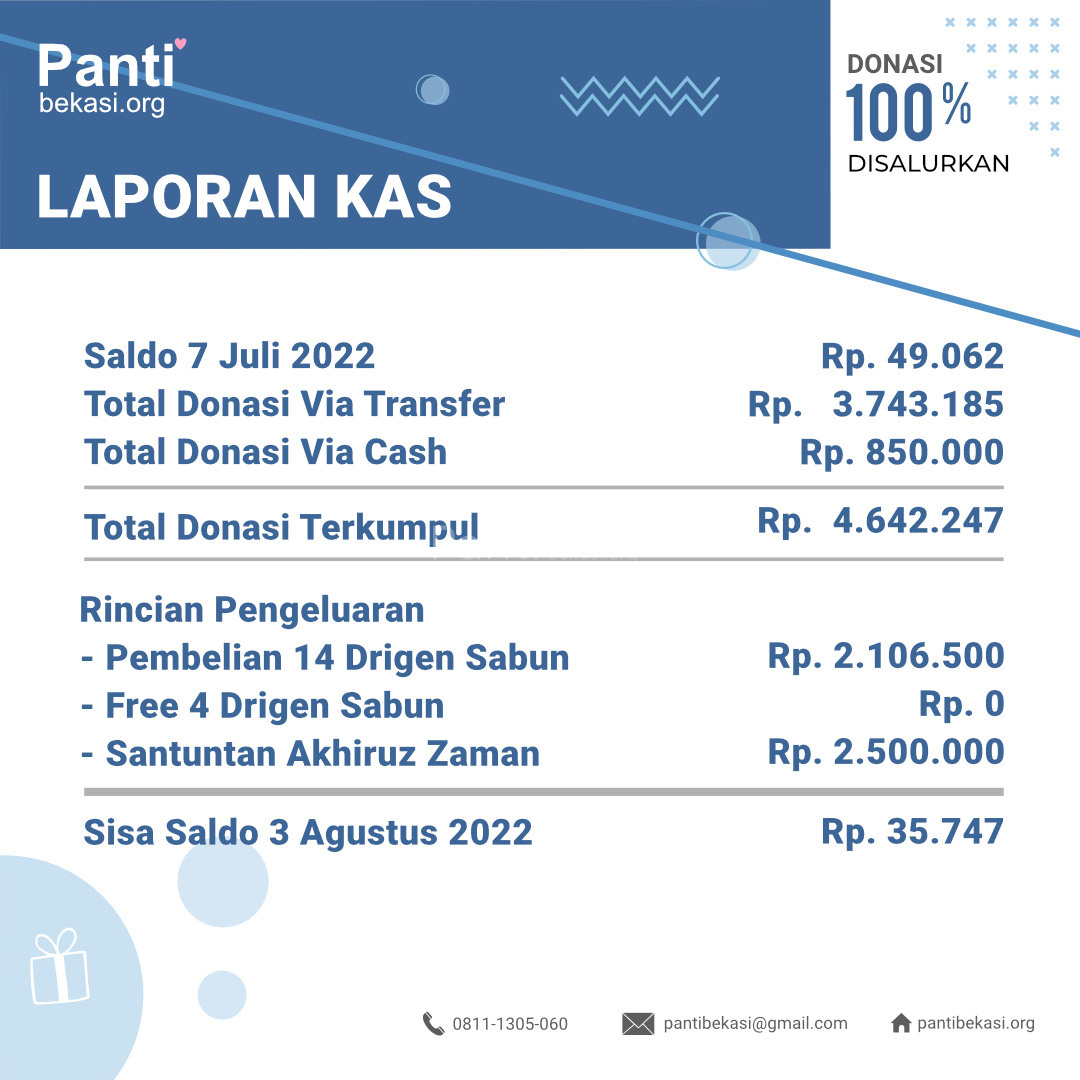 Alhamdulillah Safari Panti bulan Agustus 2022 telah kami laksanakan. Alhamdulillah amanah dari kawan-kawan donatur telah kami sampaikan dan berjalan dengan lancar. Terimakasih kepada seluruh donatur yang telah menyisihkan sebagian rezekinya melalui pantibekasi.org.