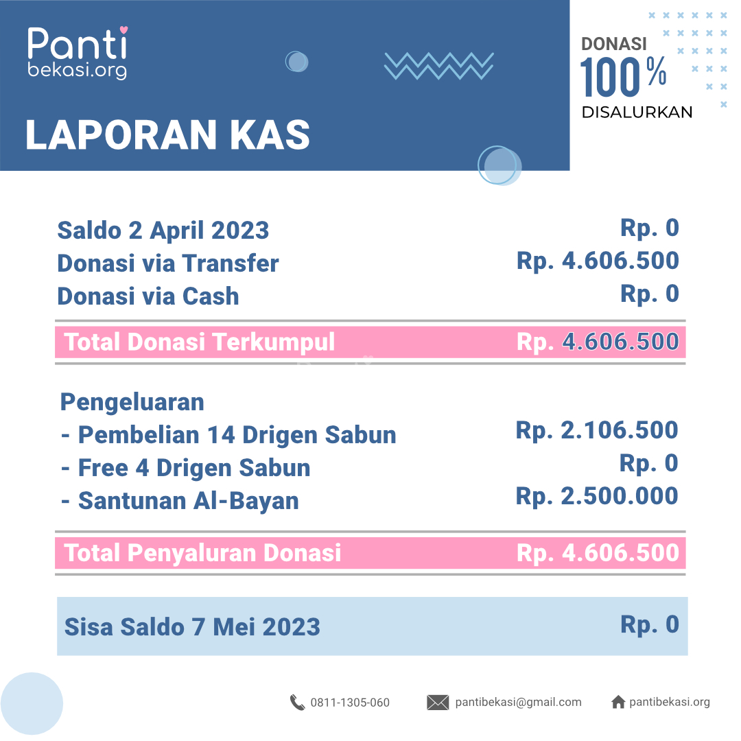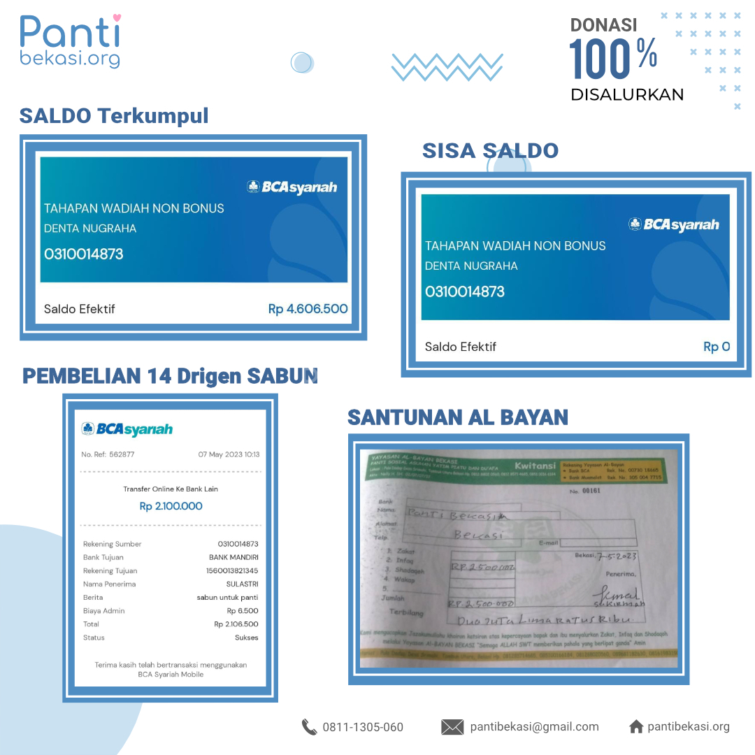 Terimakasih kepada seluruh donatur yang telah menyisihkan sebagian rezekinya melalui pantibekasi.org.