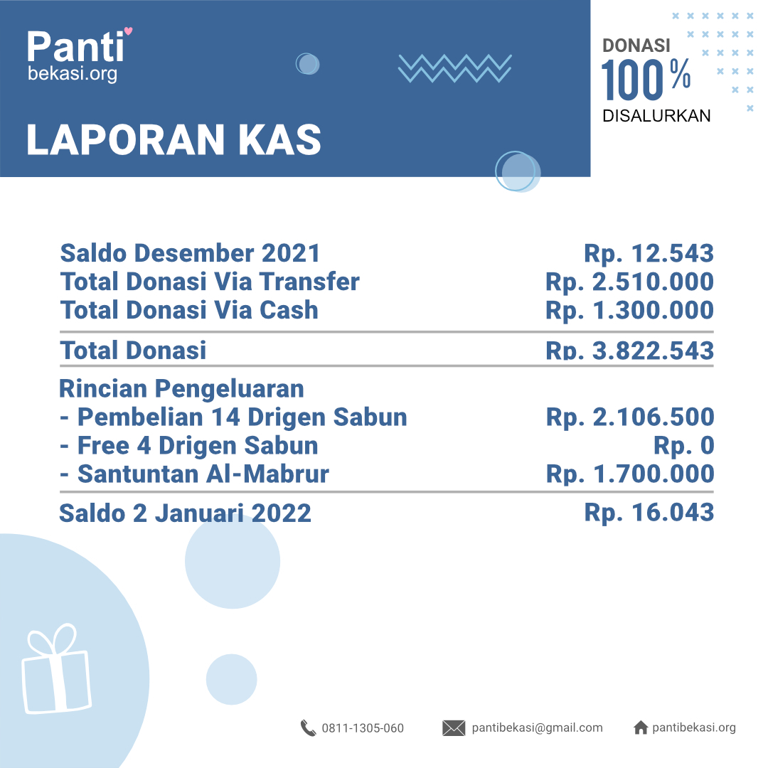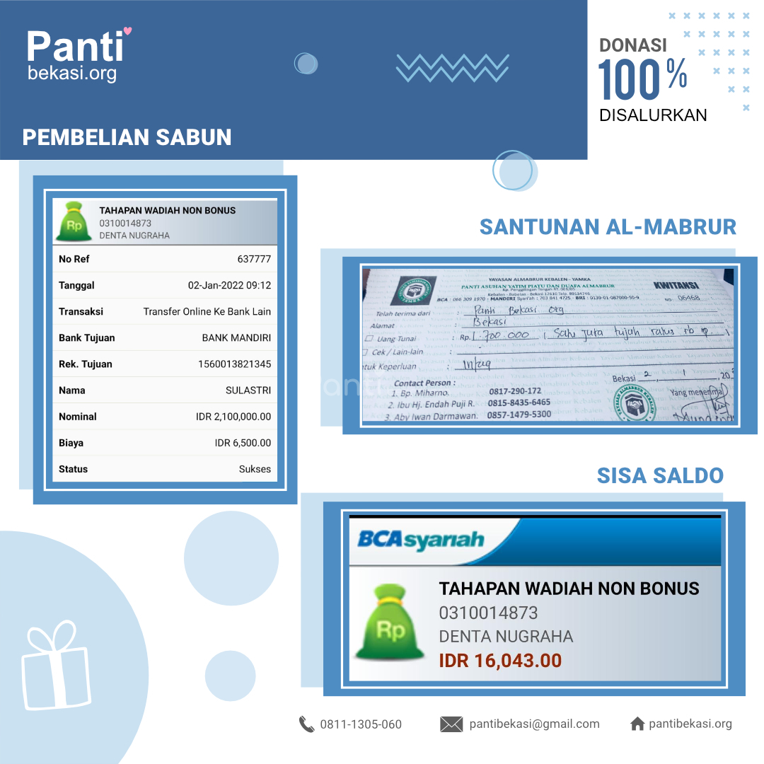 Alhamdulillah Safari Panti bulan JANUARI 2022 telah kami laksanakan dan berjalan dengan lancar. Terimakasih kepada seluruh donatur yang telah menyisihkan sebagian rezekinya melalui pantibekasi.org.