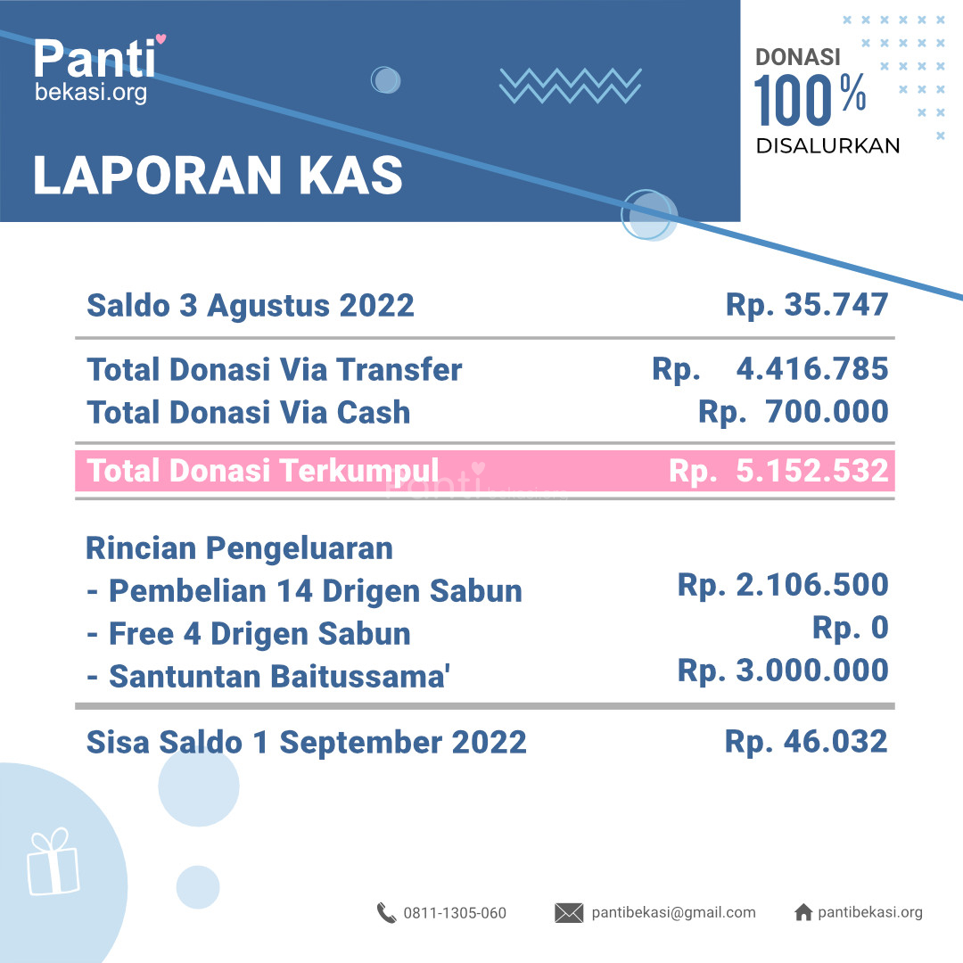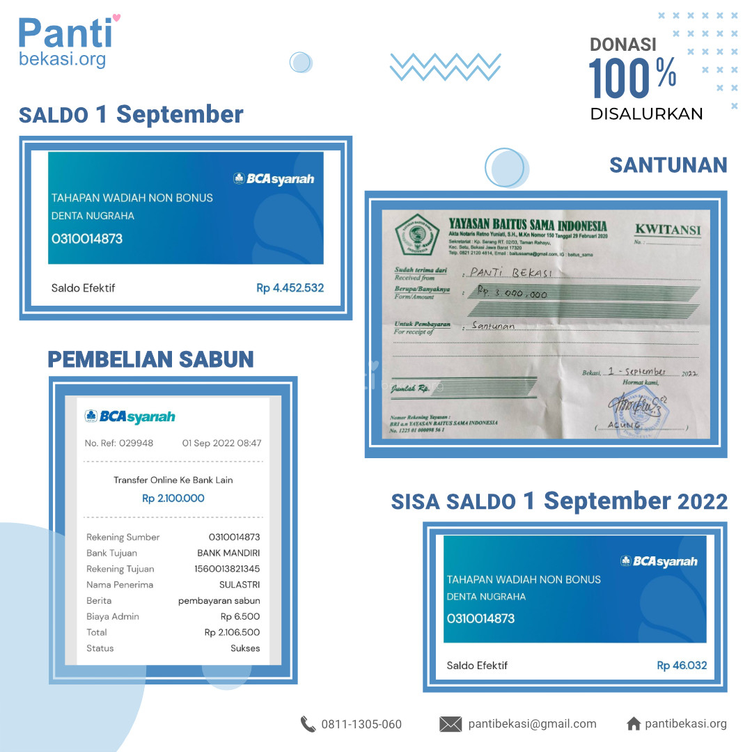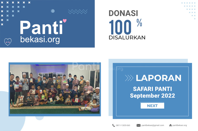 Alhamdulillah Safari Panti bulan September 2022 telah kami laksanakan. Alhamdulillah amanah dari kawan-kawan donatur telah kami sampaikan dan berjalan dengan lancar. Terimakasih kepada seluruh donatur yang telah menyisihkan sebagian rezekinya melalui pantibekasi.org.