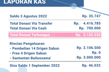 Untuk rincian laporan donasi, dapat dicek melalui Laporan Penerimaan dan Laporan Penyaluran Donasi.