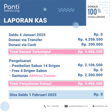 Terimakasih kepada seluruh donatur yang telah menyisihkan sebagian rezekinya melalui pantibekasi.org.